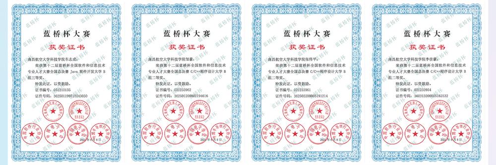 ★2021年十二届“蓝桥杯”全国软件和信息技术专业人才大赛中,斩获江西省一等奖11项,江西省二等奖12项,江西省三等奖7项;斩获国家级二等奖4项,国家级三等奖3项;同时,学院在比赛中荣获“江西赛区优胜学校奖”和“全国总决赛优秀组织单位”荣誉称号。