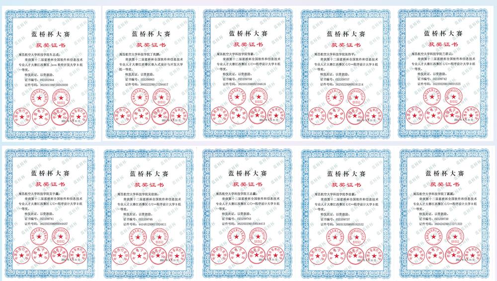 ★2021年江西省大学生程序设计竞赛中,斩获江西省一等奖1项,江西省三等奖1项。